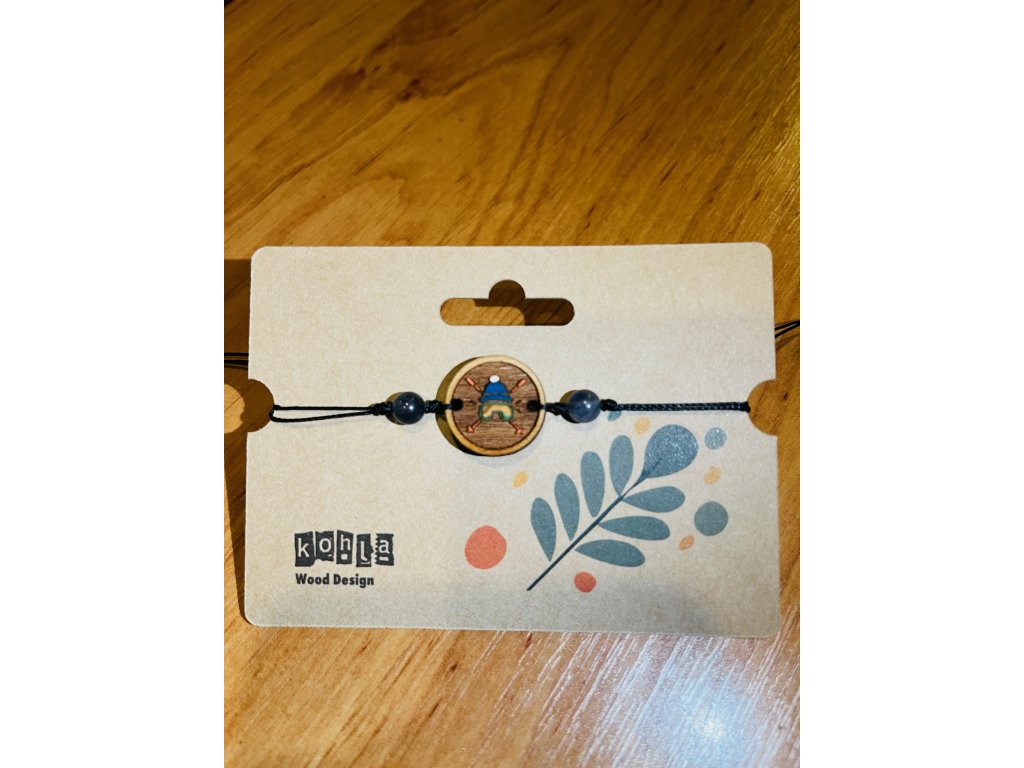 Dřevěný přívěsek s motivem lyžařské čepice, brýlí a skřížených hůlek připomíná horskou pohodu, zasněžené dny i radost z návratu do tepla. Korálky z labradoritu dodávají klid, chrání před vnějšími vlivy a posilují intuici – jako vnitřní kompas v zimním světě.
