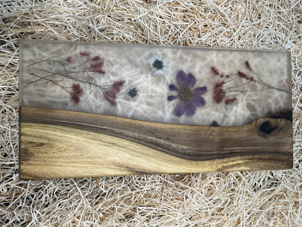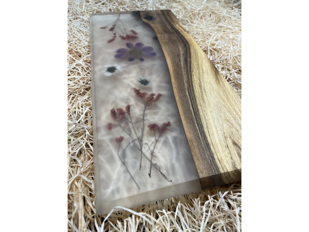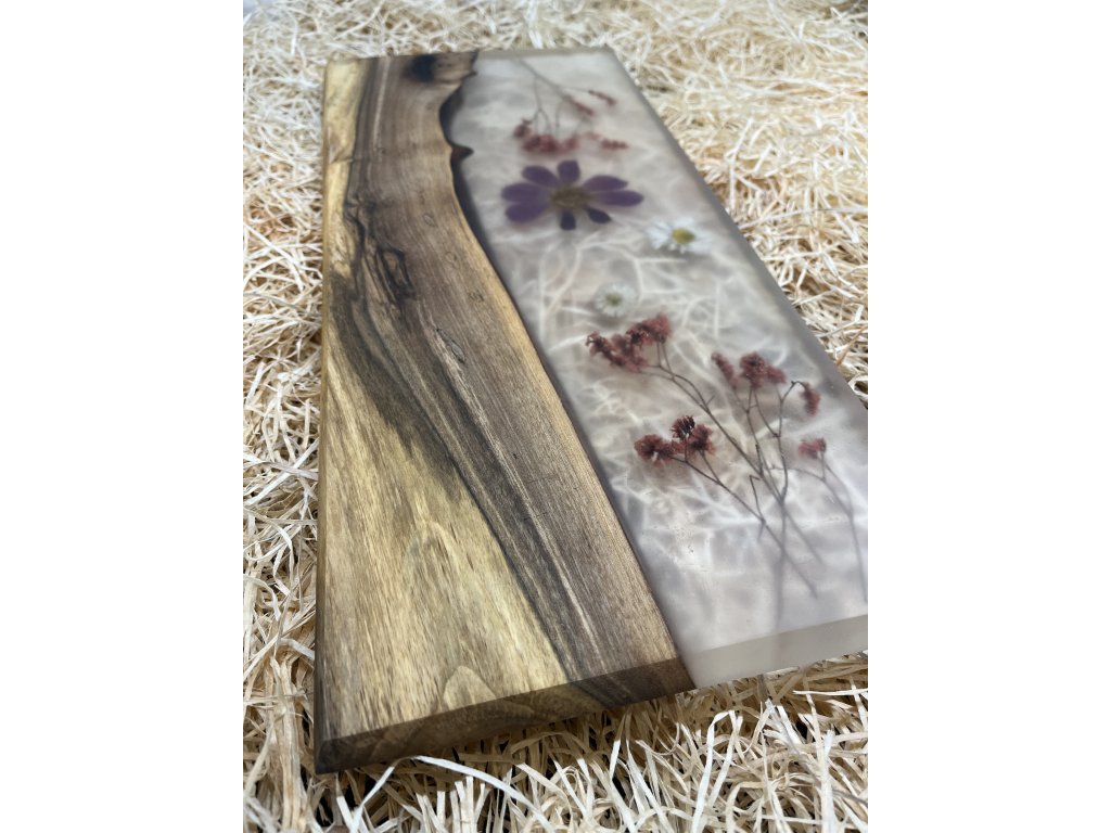 Prkénko z ořechu s čirou pryskyřicí s květy