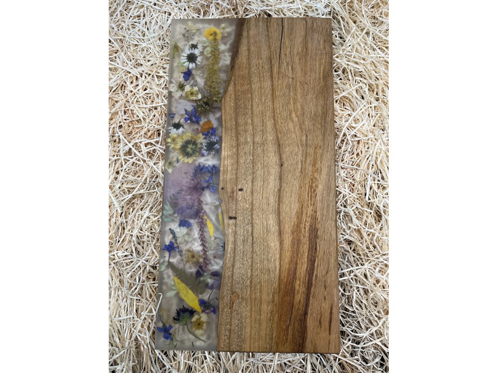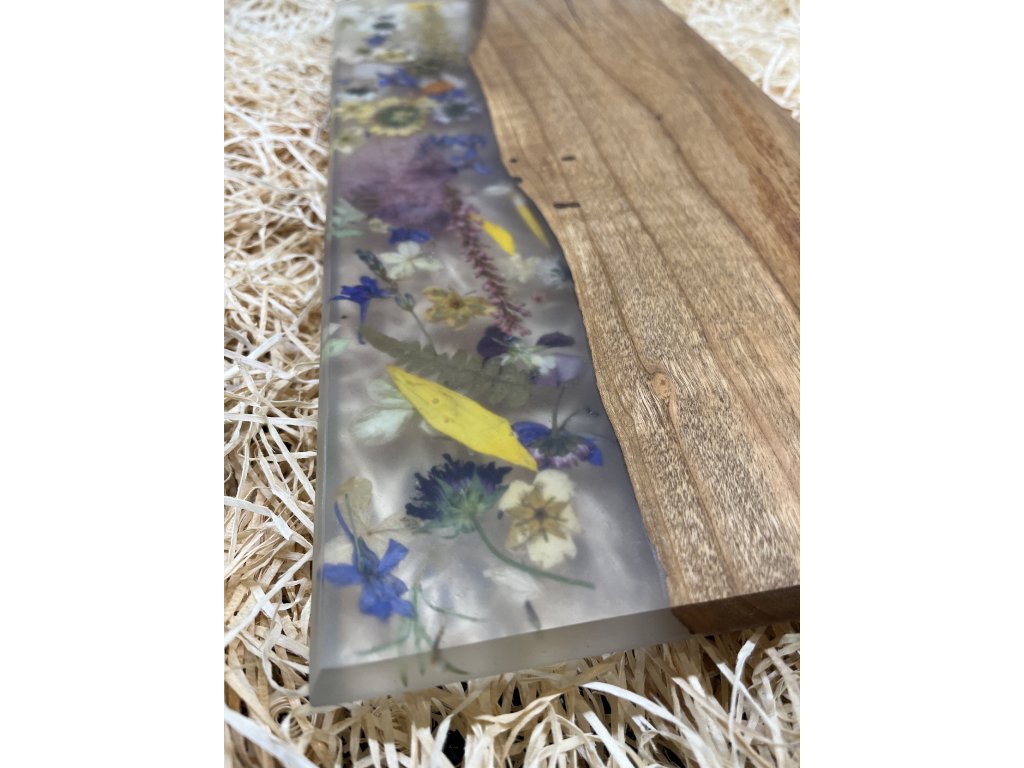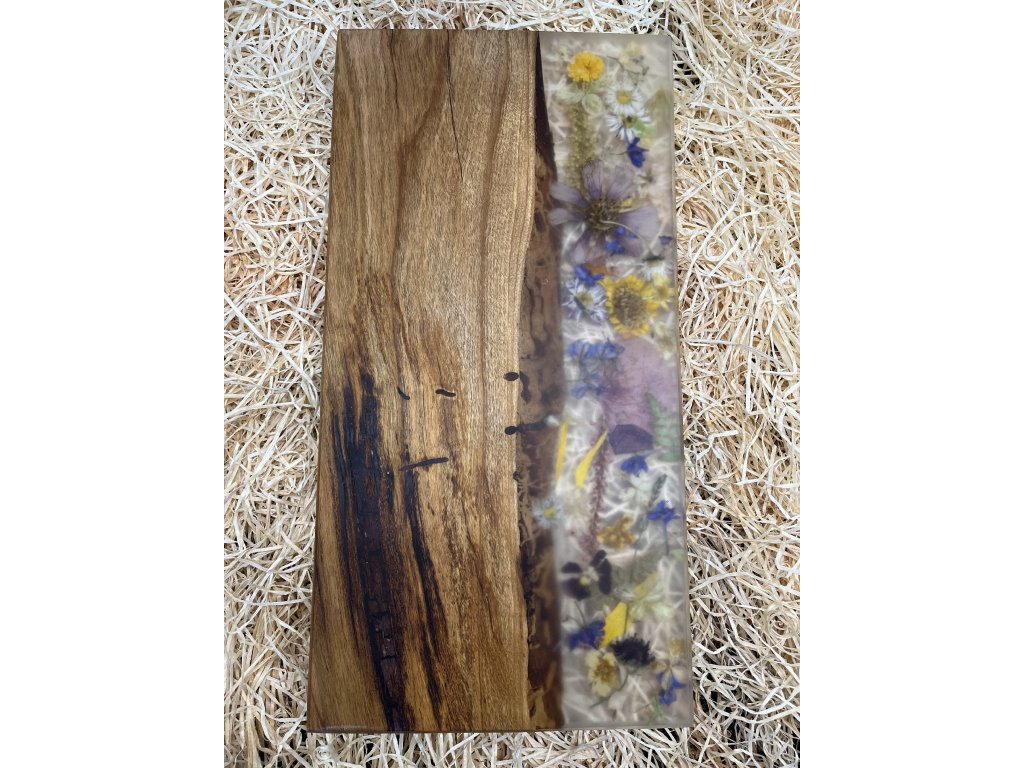 Prkénko z ořechu s čirou pryskyřicí s květy