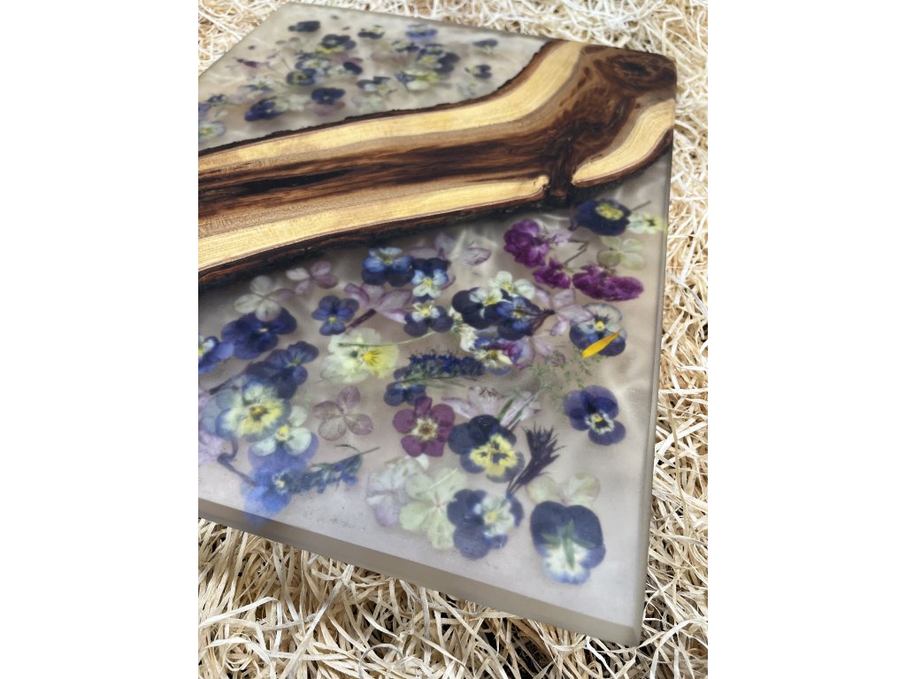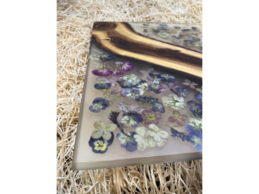 Prkénko z jabloně a čirá pryskyřice s květy