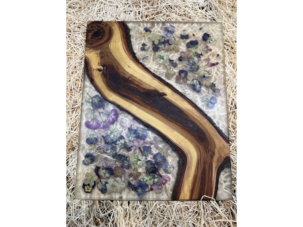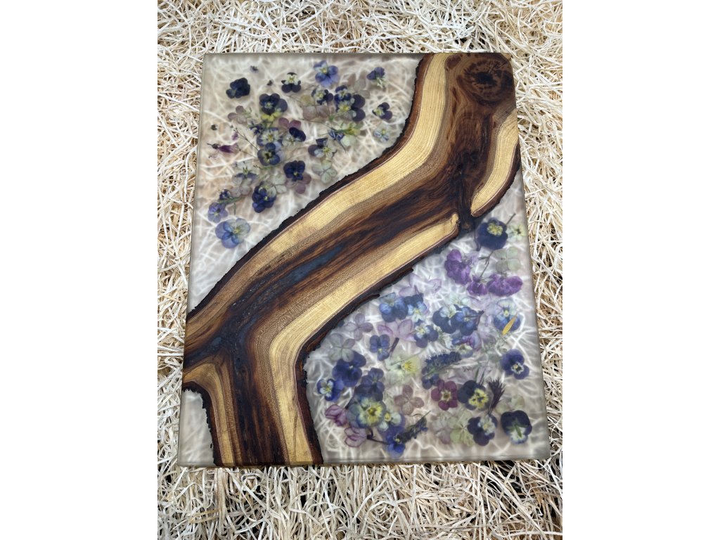 Prkénko z ořechu s čirou pryskyřicí s květy