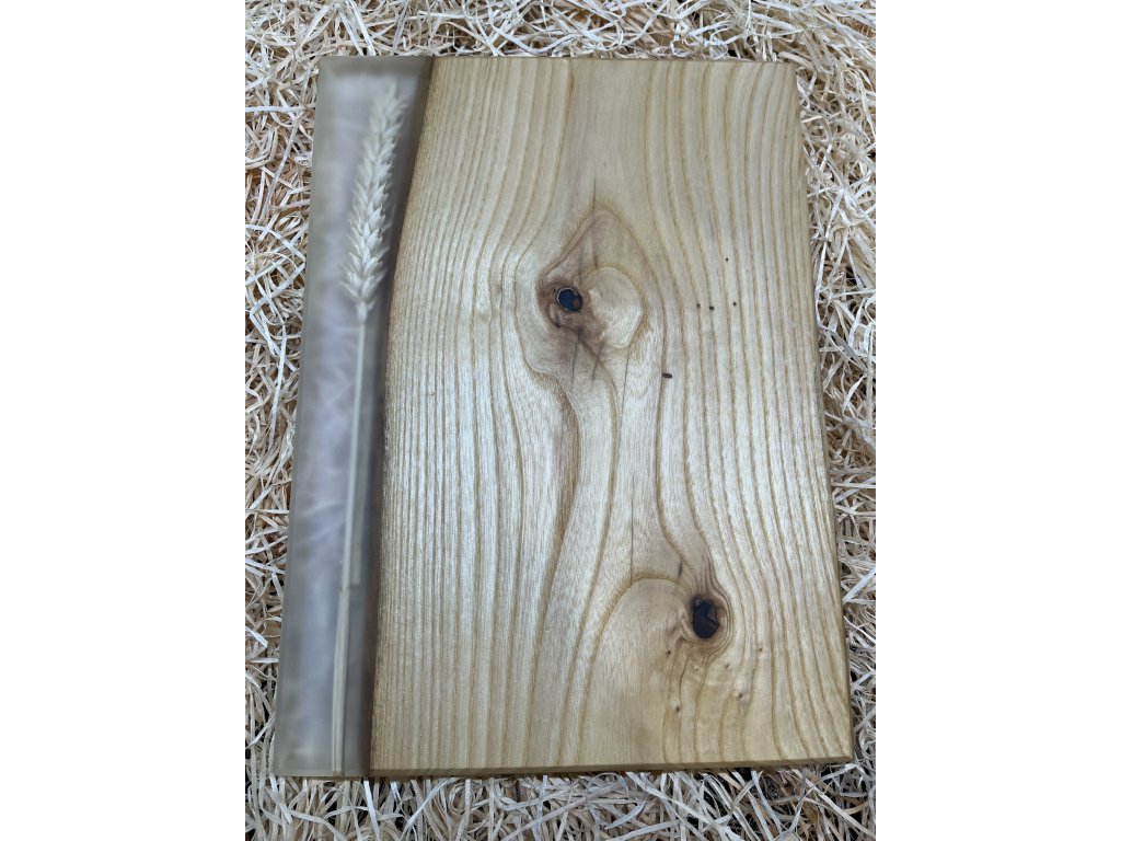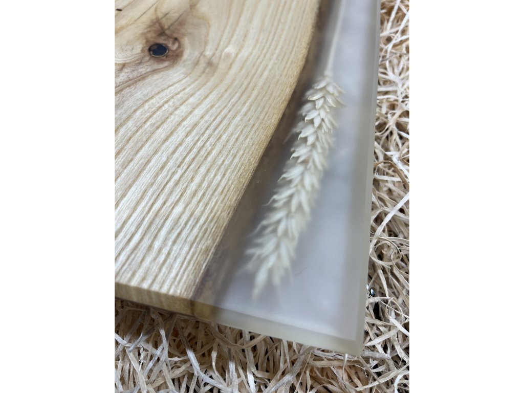 Prkénko z jasanu a stéblem obilí