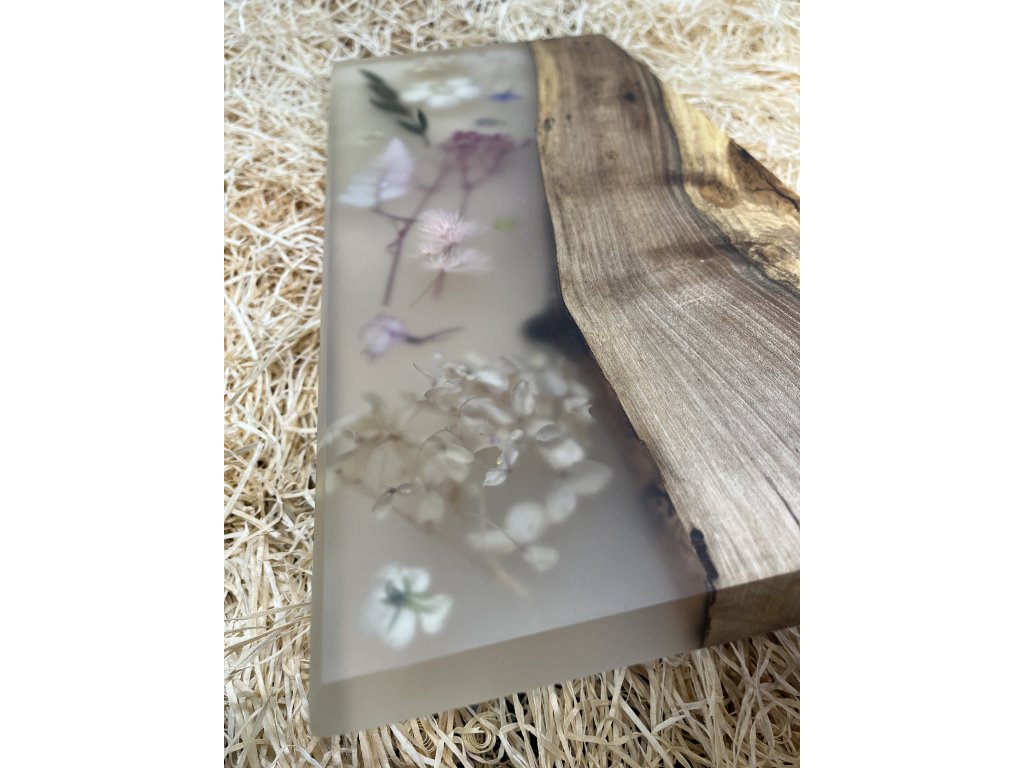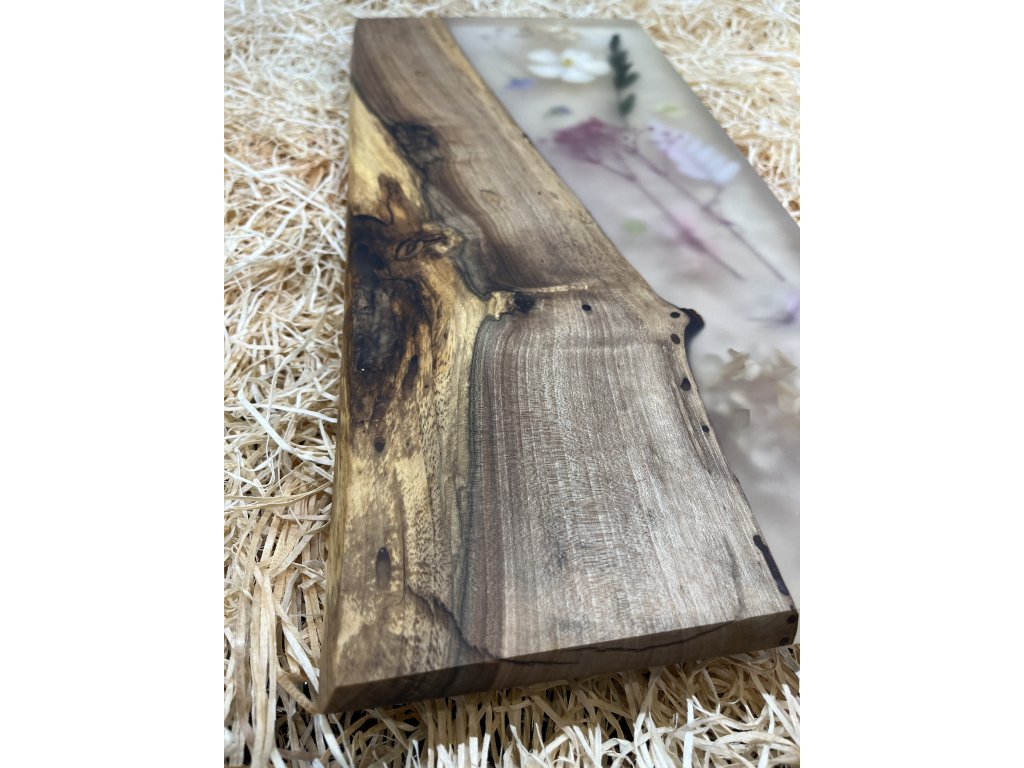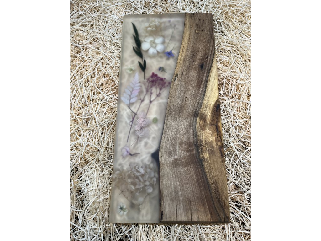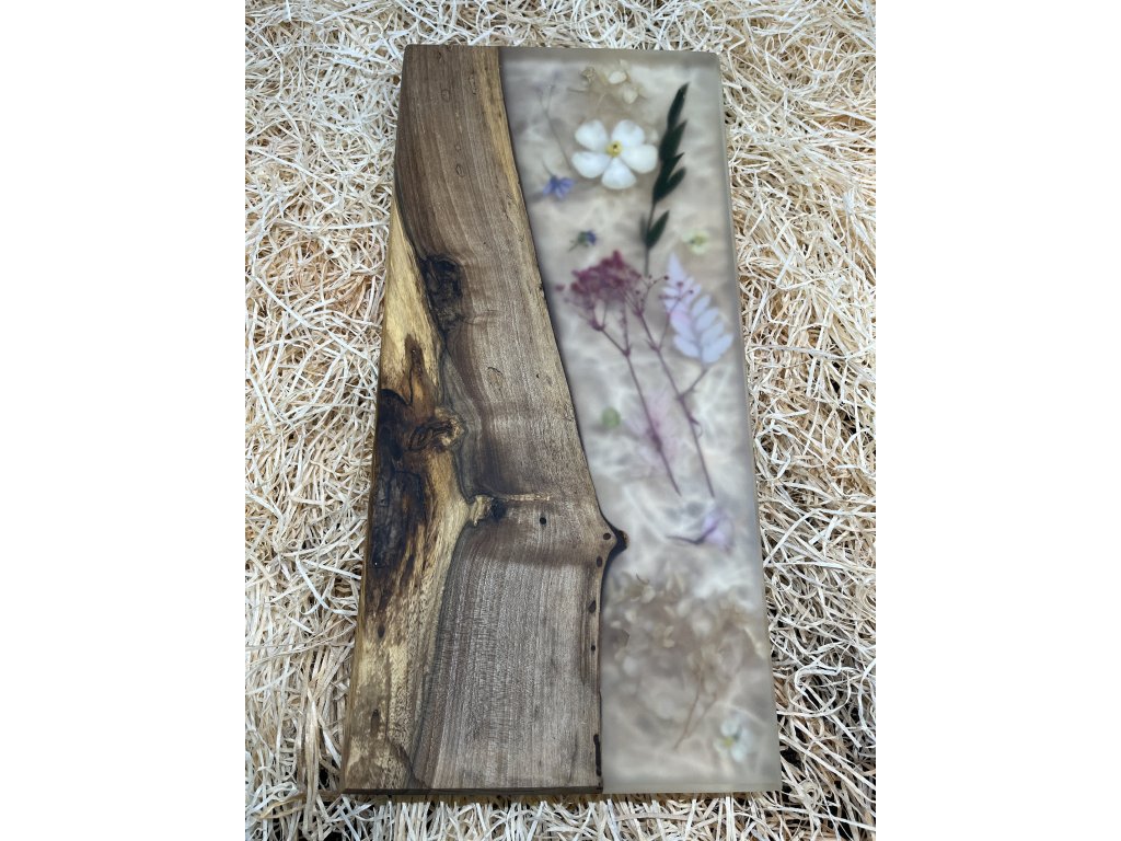 Prkénko z ořechu s čirou pryskyřicí s květy