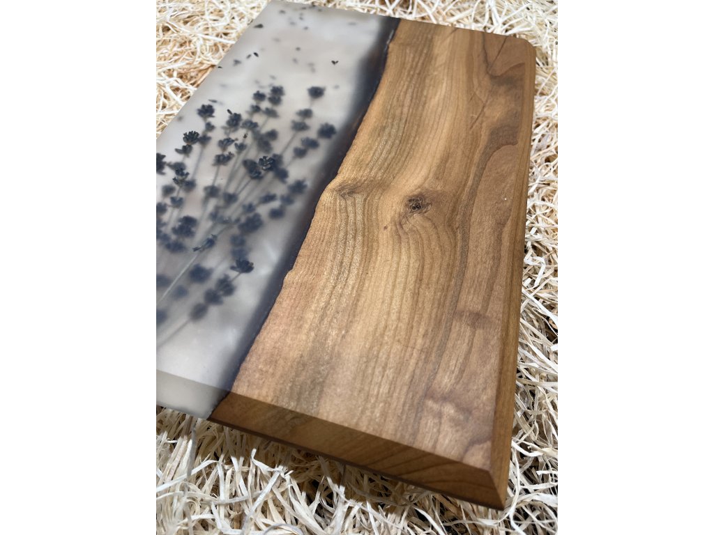 Prkénko z třešňového dřeva a čiré pryskyřice s levandulí