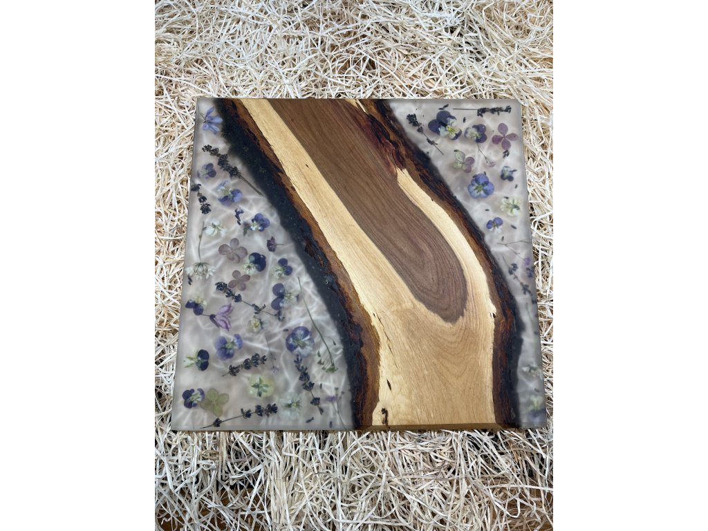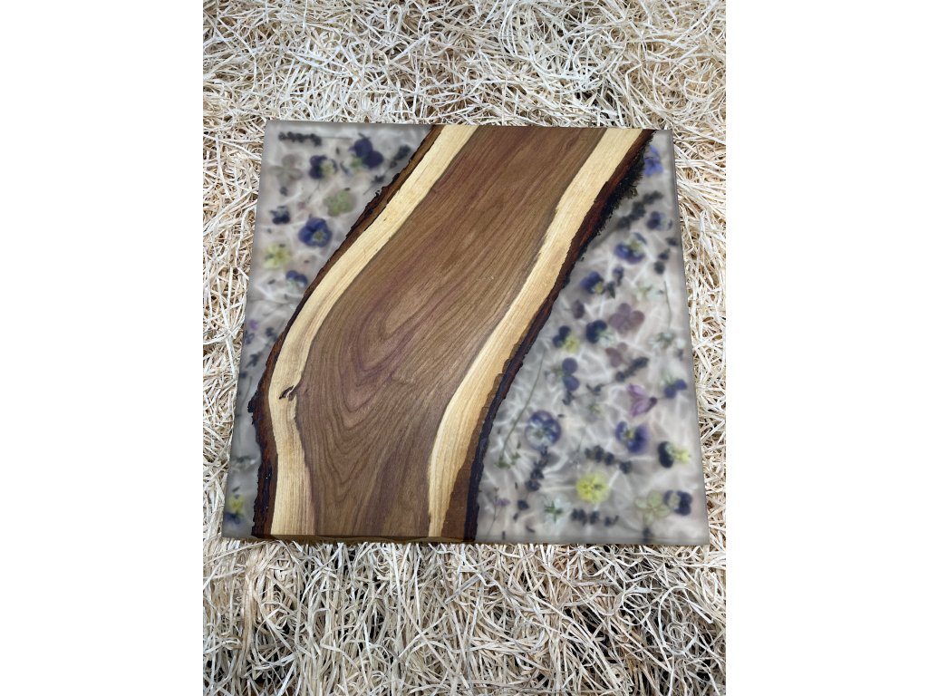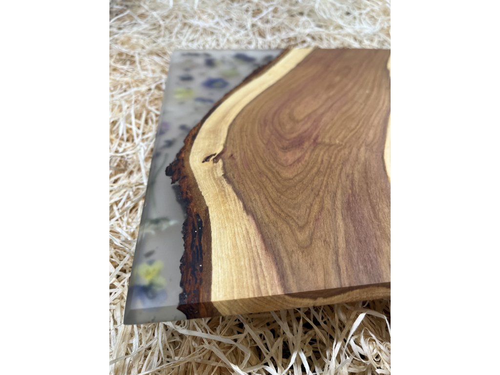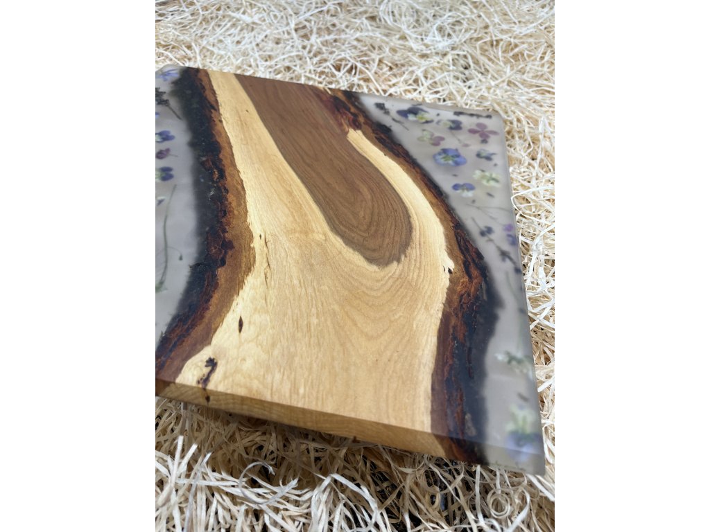 Prkénko z ořechu s čirou pryskyřicí s květy