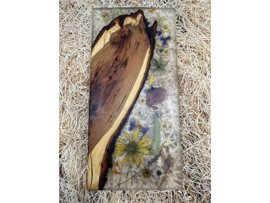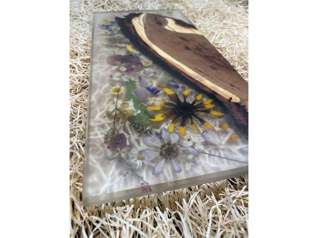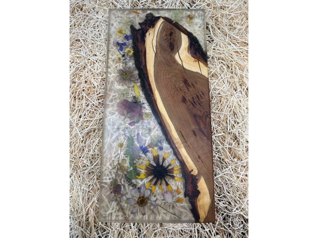 Prkénko z ořechu s čirou pryskyřicí s květy