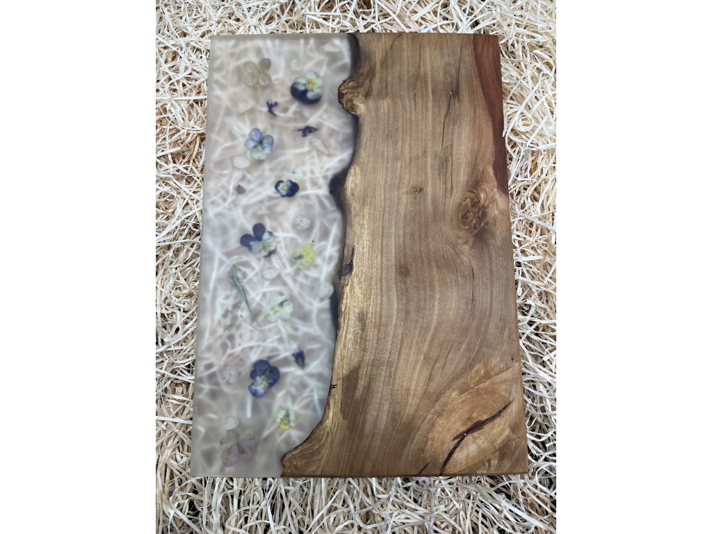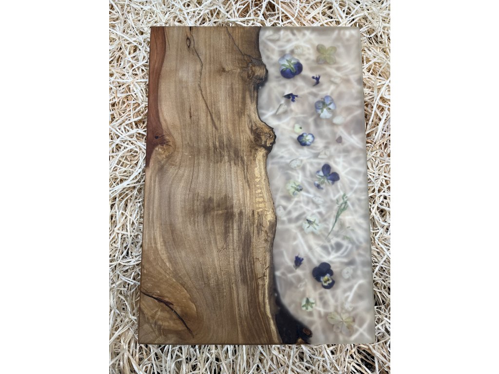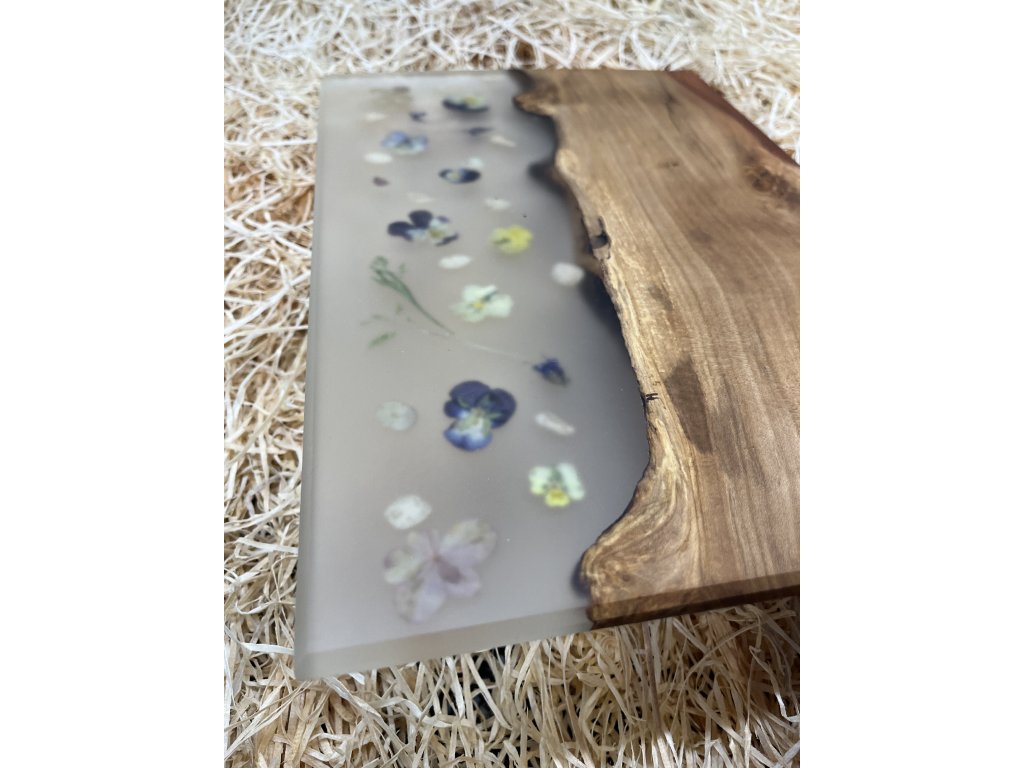 Prkénko z ořechu s čirou pryskyřicí s květy